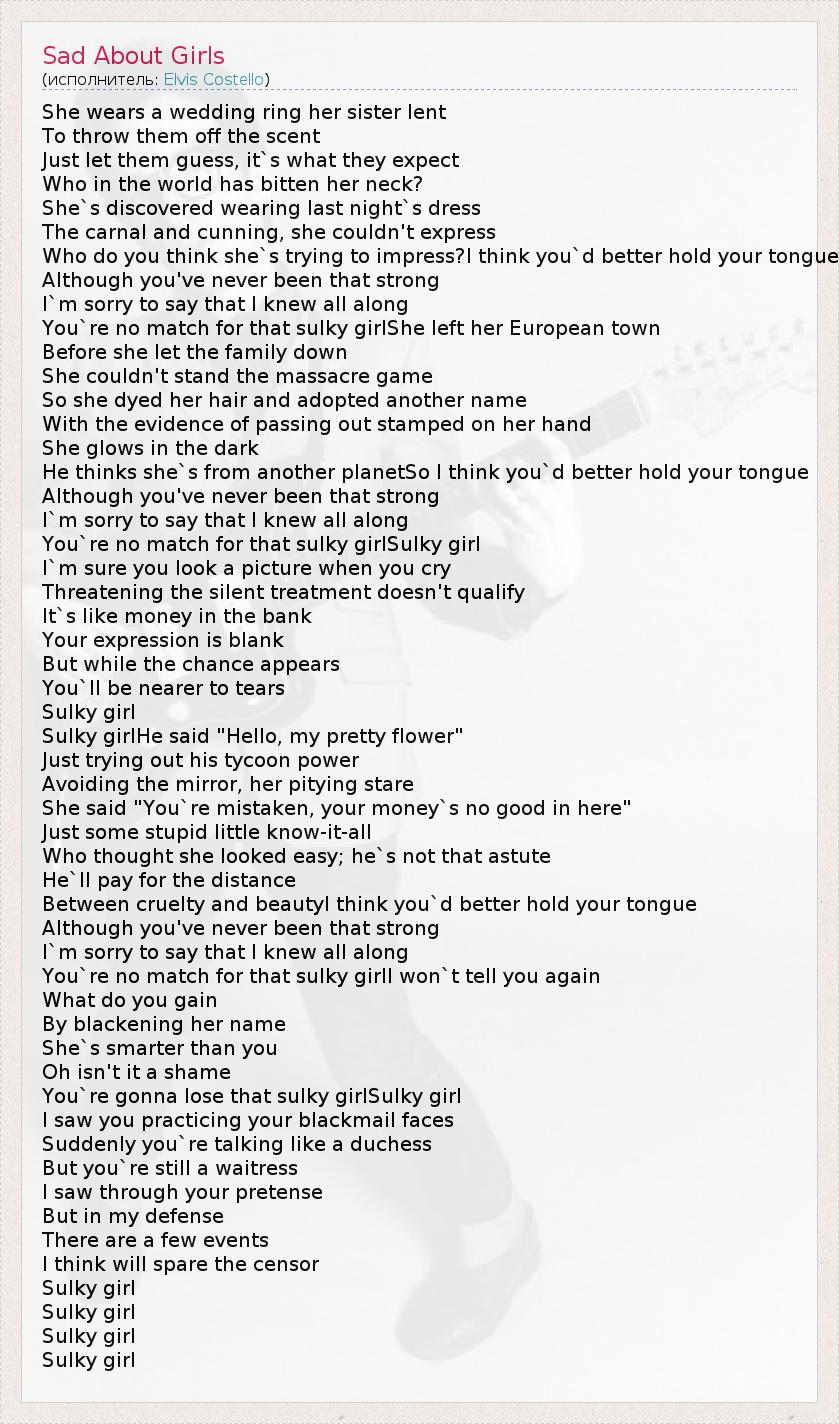 А как ты думаешь, о чем песня "Sad About Girls" ?