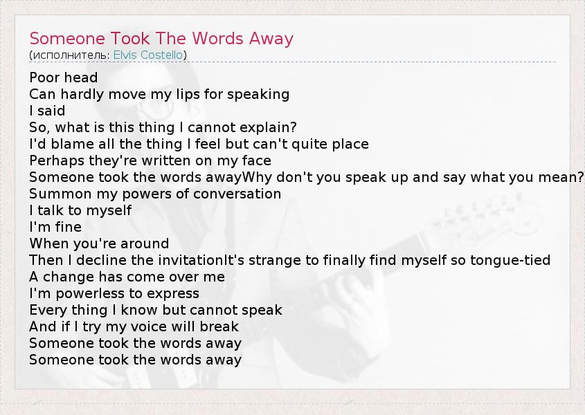 ГлавнаяИсполнителиElvis CostelloSomeone Took The Words Away