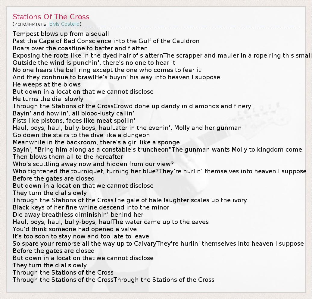 А как ты думаешь, о чем песня "Stations Of The Cross" ?