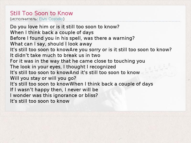 А как ты думаешь, о чем песня "Still Too Soon to Know" ?