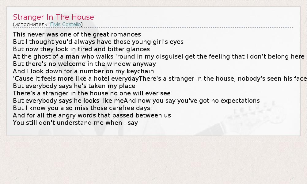 А как ты думаешь, о чем песня "Stranger In The House" ?