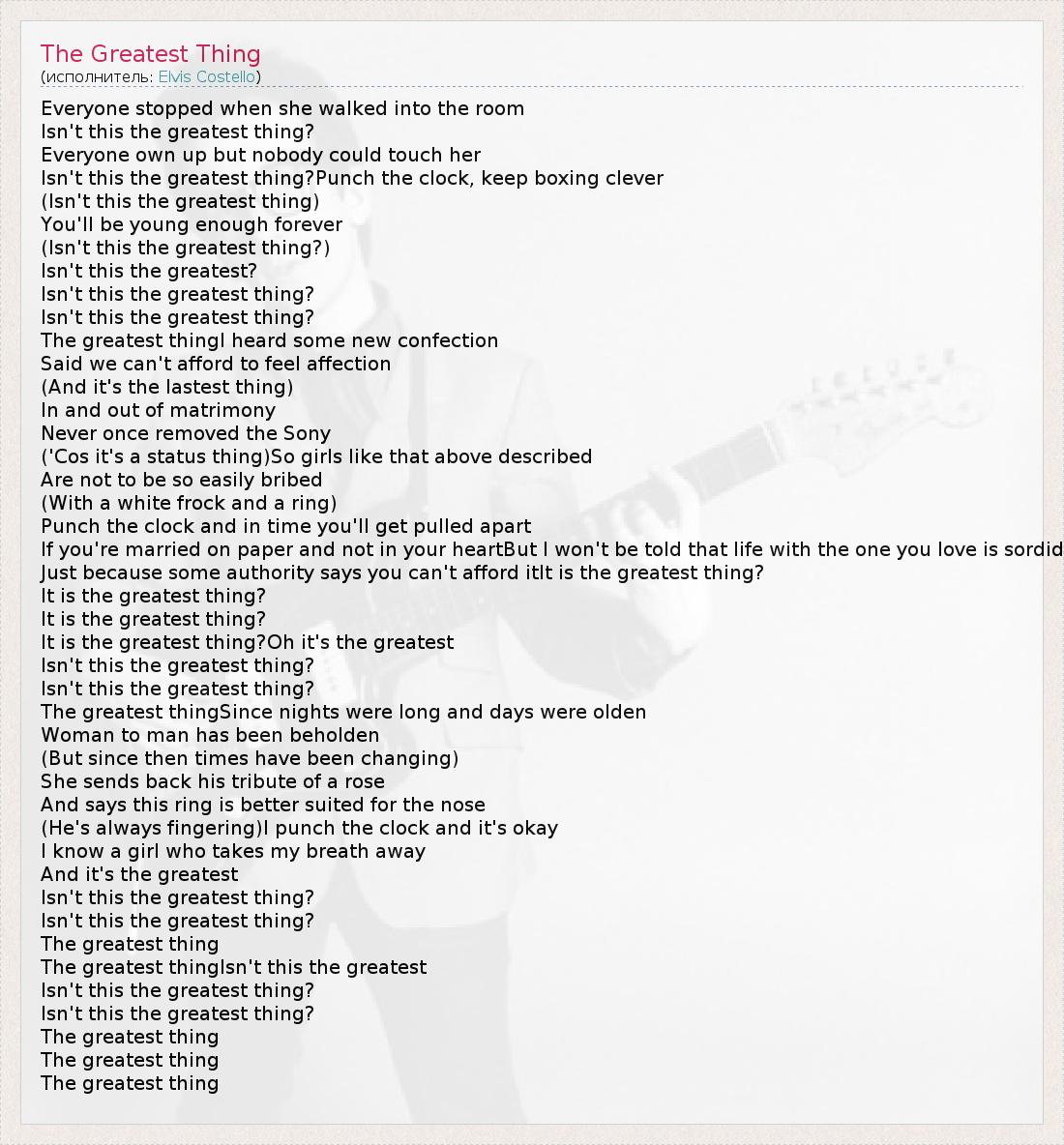 А как ты думаешь, о чем песня "The Greatest Thing" ?