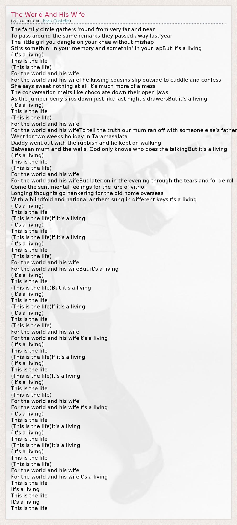 А как ты думаешь, о чем песня "The World And His Wife" ?