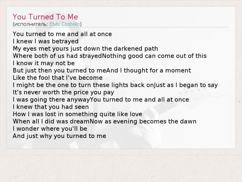 А как ты думаешь, о чем песня "You Turned To Me" ?