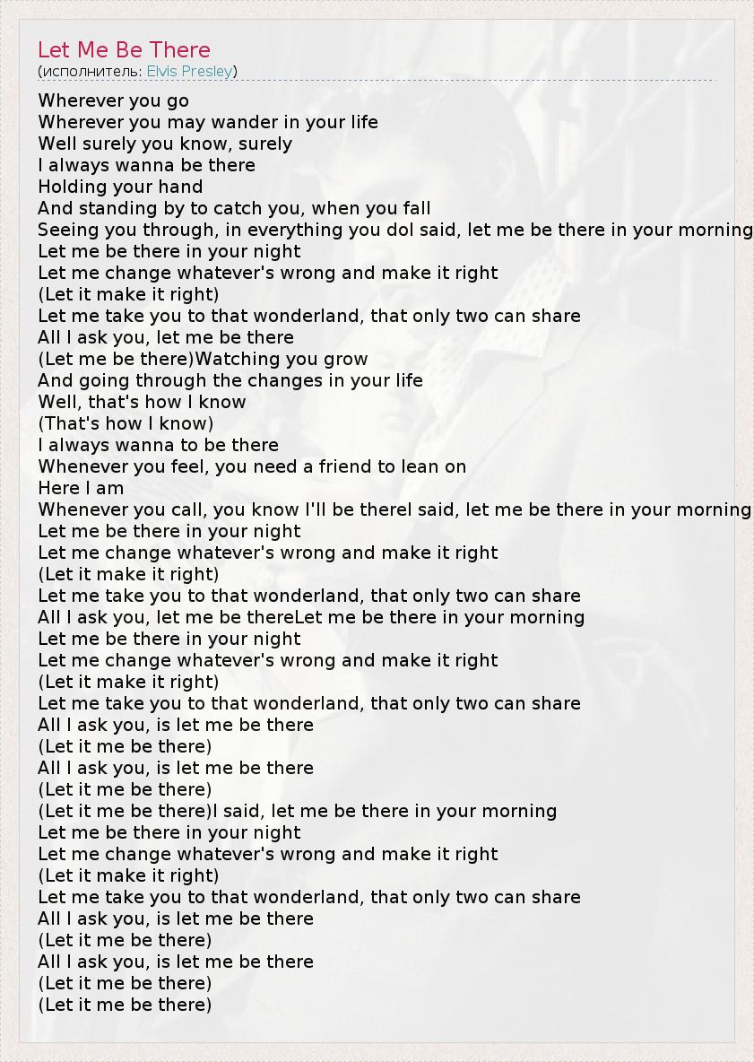 А как ты думаешь, о чем песня "Let Me Be There" ?