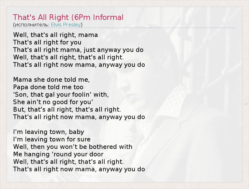 А как ты думаешь, о чем песня "That's All Right (6Pm Informal" ?