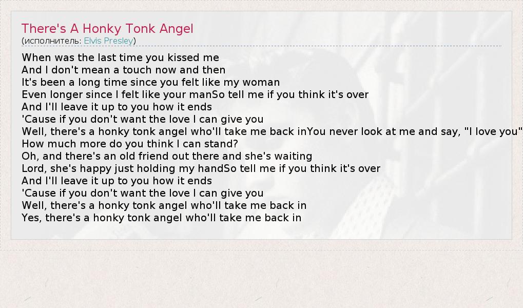 А как ты думаешь, о чем песня "There's A Honky Tonk Angel" ?