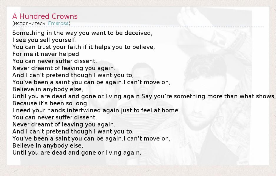А как ты думаешь, о чем песня "A Hundred Crowns" ?