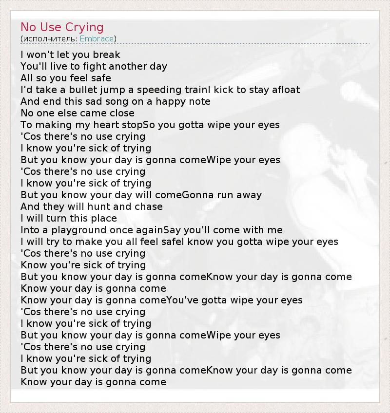 А как ты думаешь, о чем песня "No Use Crying" ?