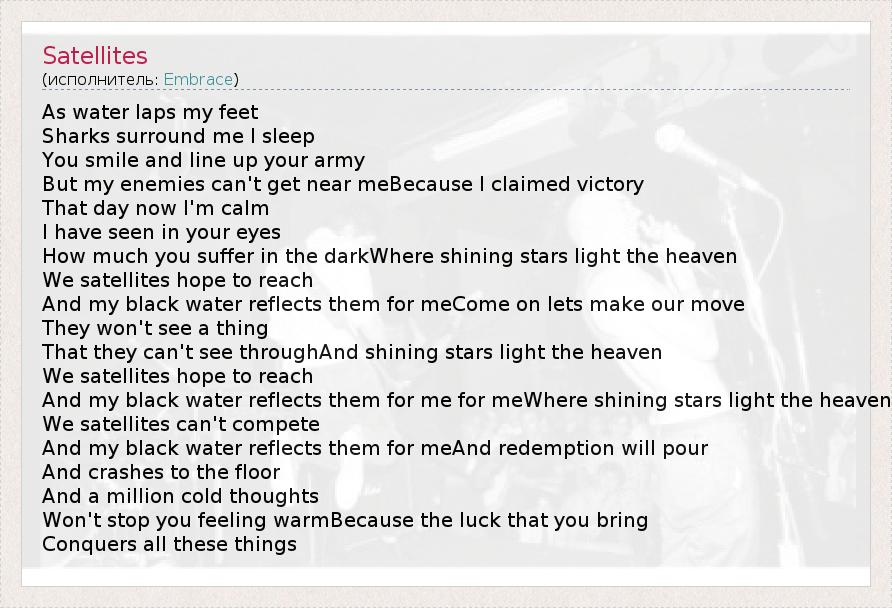 And my black water reflects them for me for meWhere shining stars light the heaven