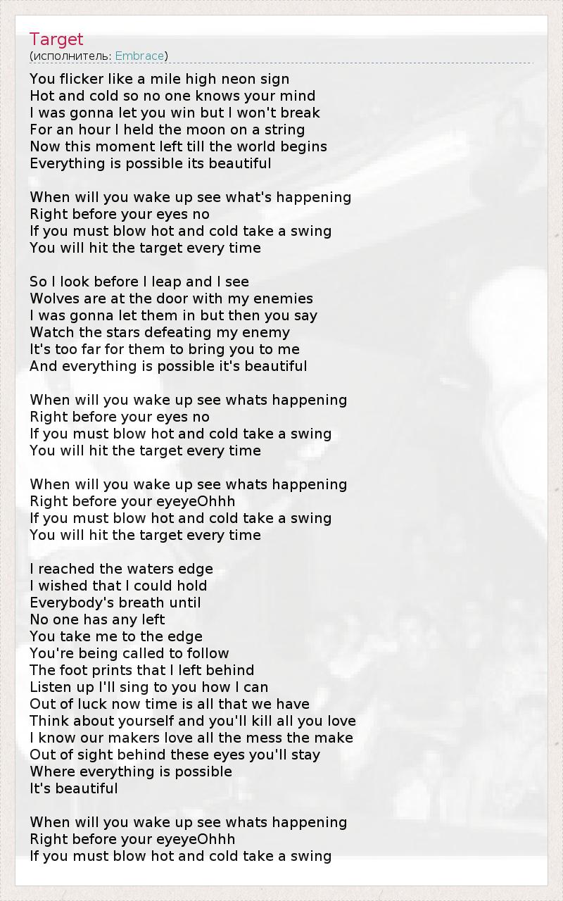 Это интересно:Существует несколько групп с названием Embrace:1) легендарная post-hardcore-формация Embrace из Вашингтона просуществовала не так долго (лето 1985 - весна 1986), но оказала действительно огромное влияние на эмоциональный хардкор и всю хардкор/панк-сцену. На вокале в группе был небезызвестный Ian MacKaye (Minor Threat), и три бывших участника The Faith - гитарист Michael Hampton, ударник Ivor Hanson, и басист Chris Bald. Из записаных... продолжение