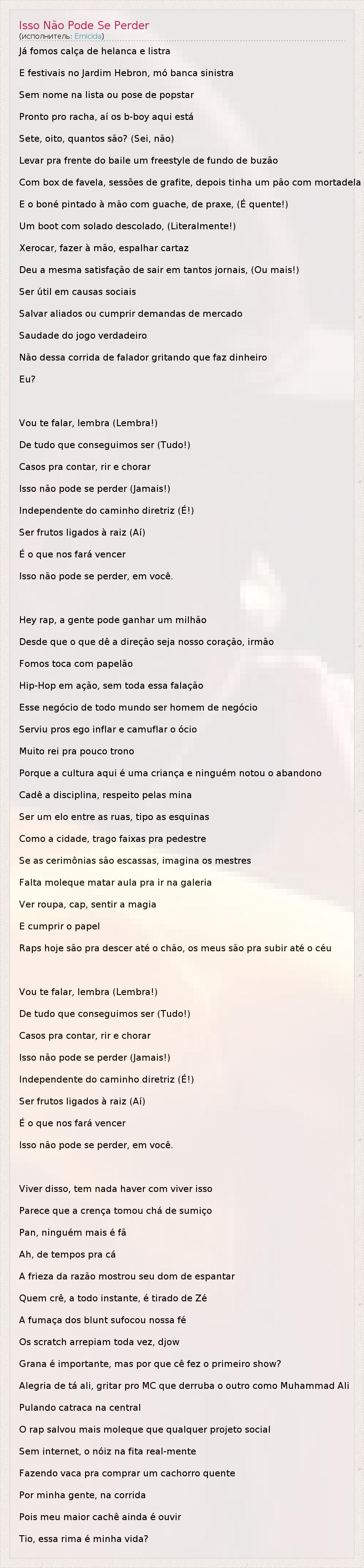А как ты думаешь, о чем песня "Isso Não Pode Se Perder" ?