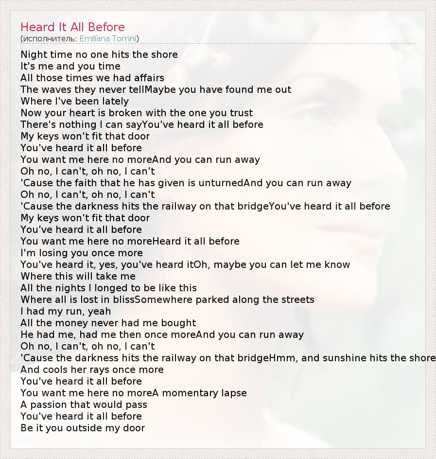 А как ты думаешь, о чем песня "Heard It All Before" ?