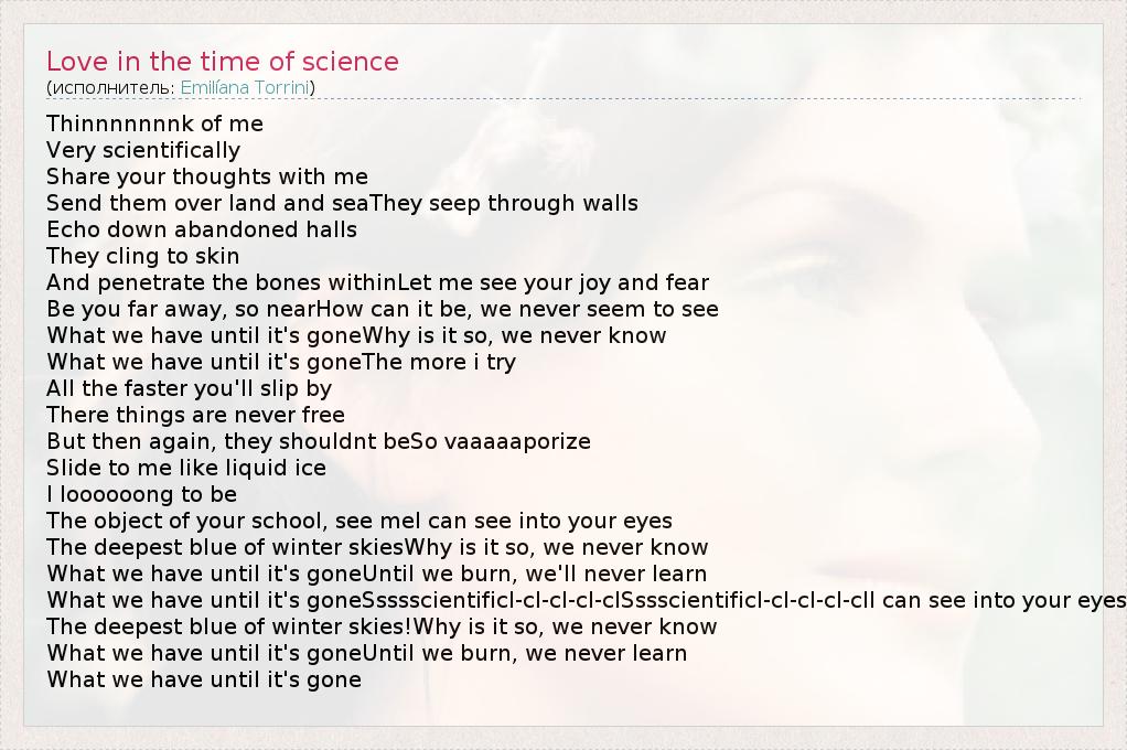 А как ты думаешь, о чем песня "Love in the time of science" ?