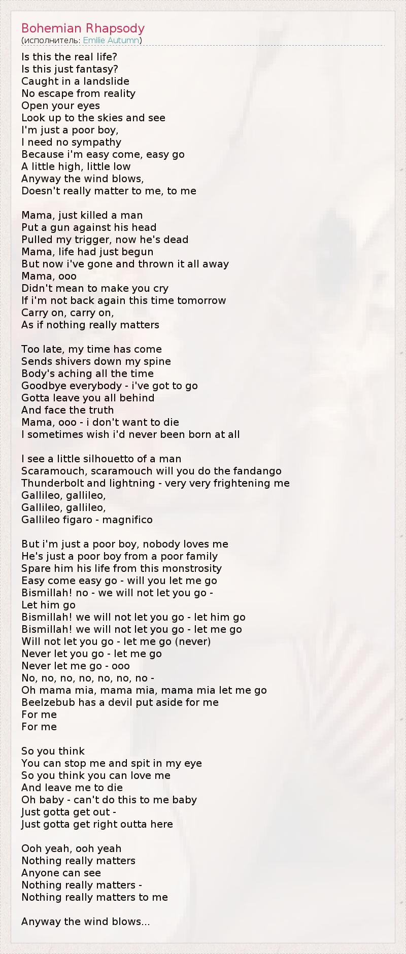 А как ты думаешь, о чем песня "Bohemian Rhapsody" ?