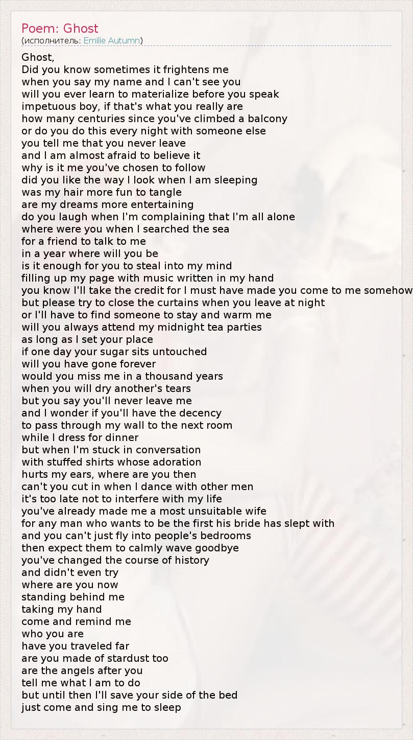 А как ты думаешь, о чем песня "Poem: Ghost" ?