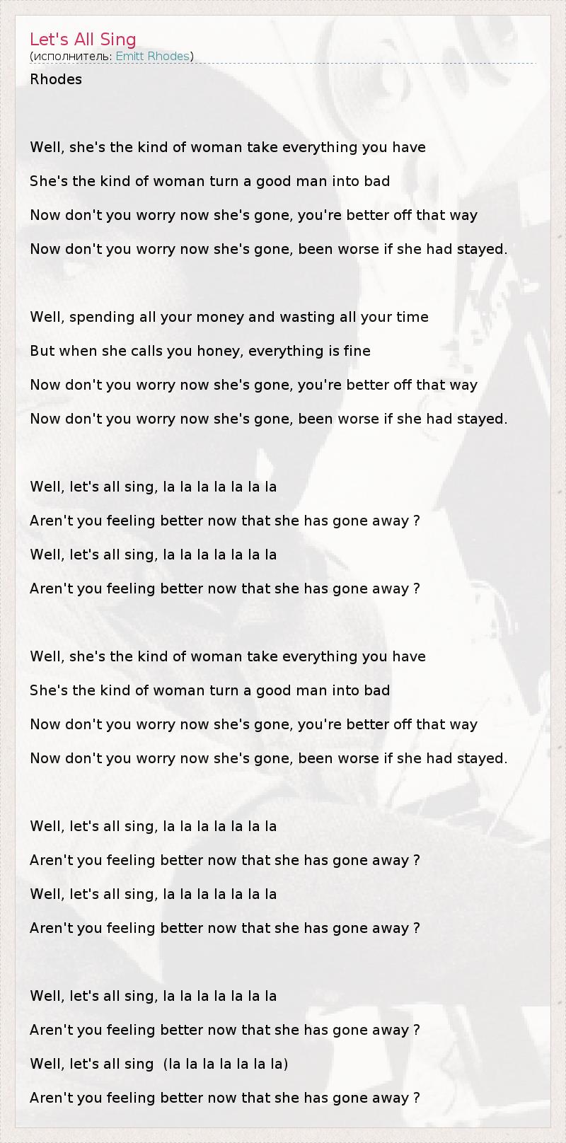 Well, let's all sing  (la la la la la la la)