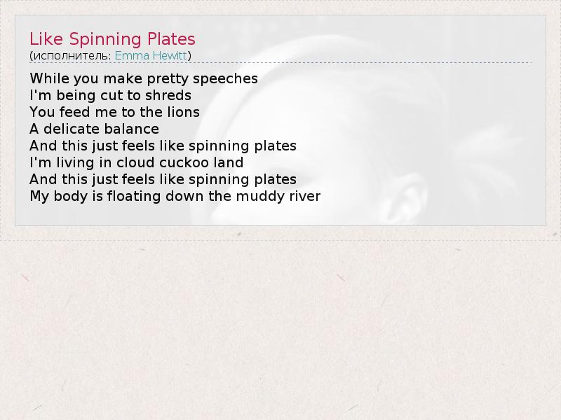 А как ты думаешь, о чем песня "Like Spinning Plates" ?