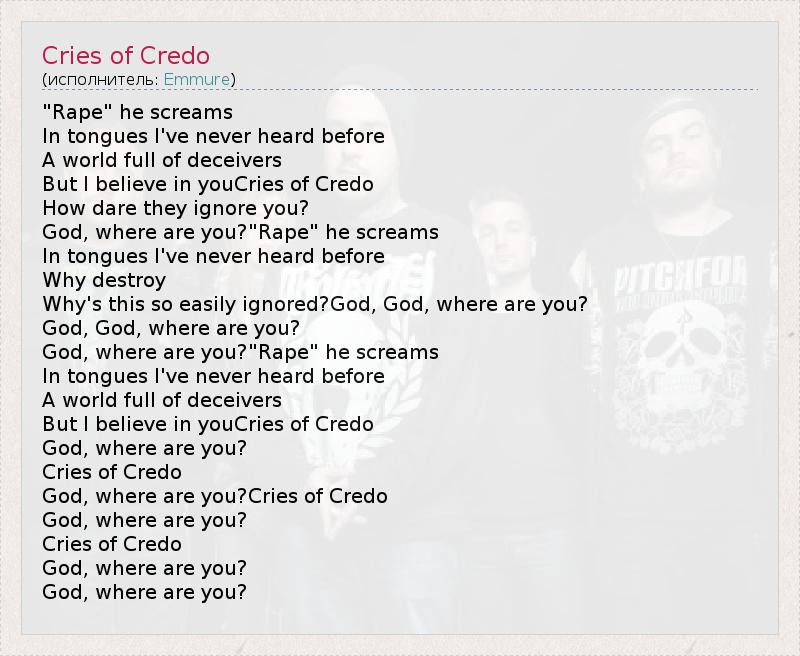 God, where are you?Cries of Credo