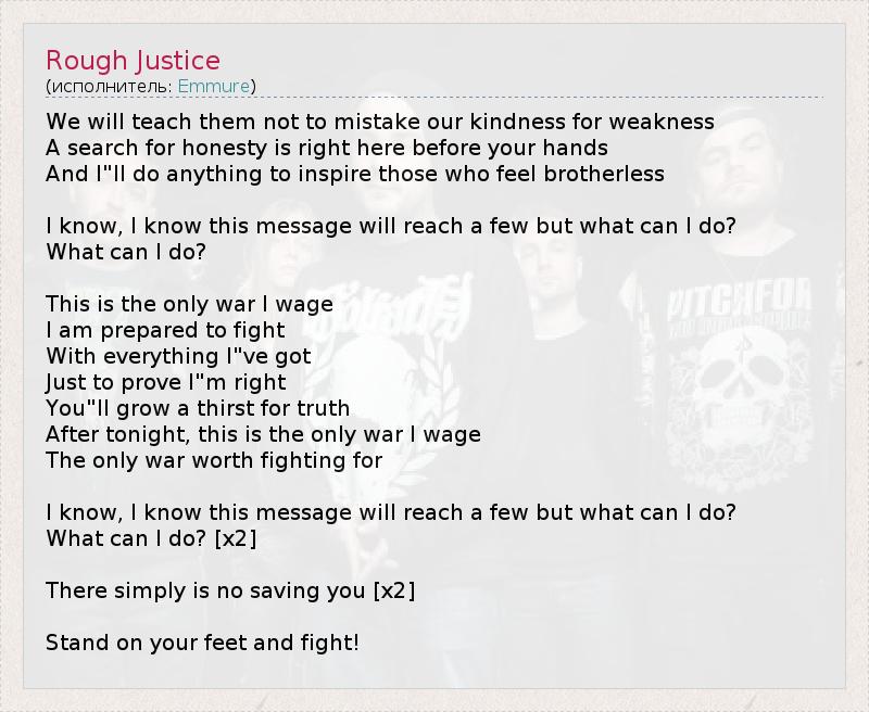 А как ты думаешь, о чем песня "Rough Justice" ?