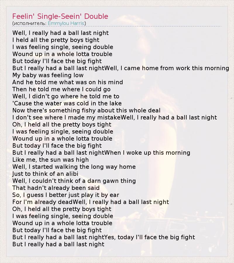 А как ты думаешь, о чем песня "Feelin' Single-Seein' Double" ?