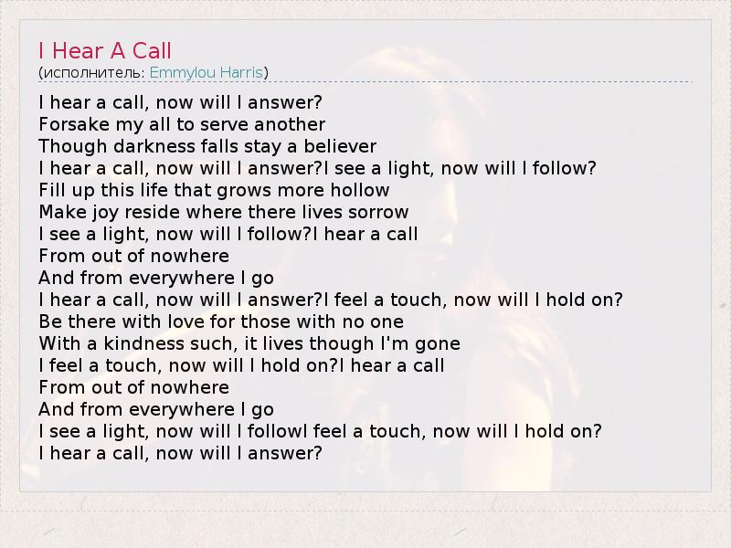 А как ты думаешь, о чем песня "I Hear A Call" ?