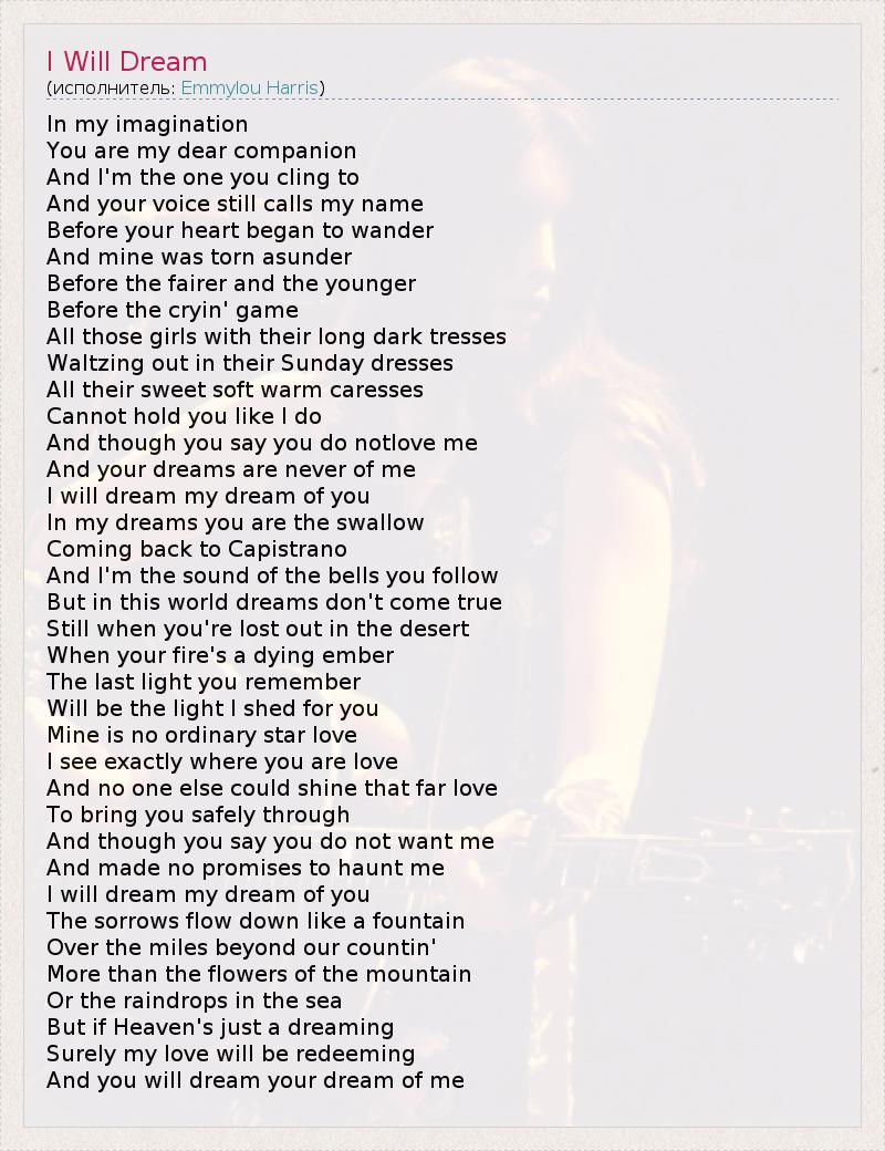 А как ты думаешь, о чем песня "I Will Dream" ?