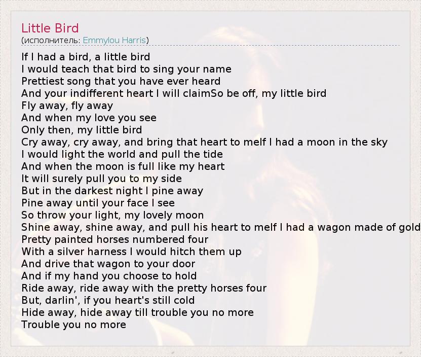 Это интересно:Эммилу Харрис (англ. Emmylou Harris, род. 2 апреля 1947) — американская певица, автор-исполнитель, получившая наибольшую популярность в качестве исполнительницы кантри.Эмилу Харрис родилась в Бирменгеме, штат Алабама, в семье Уолтера и Юджин Харрис, а детство провела недалеко от Вашингтона, округ Колумбия. В конце 1960-х, будучи студенткой колледжа, она выступала в местном фольклорном дуэте. В... продолжение