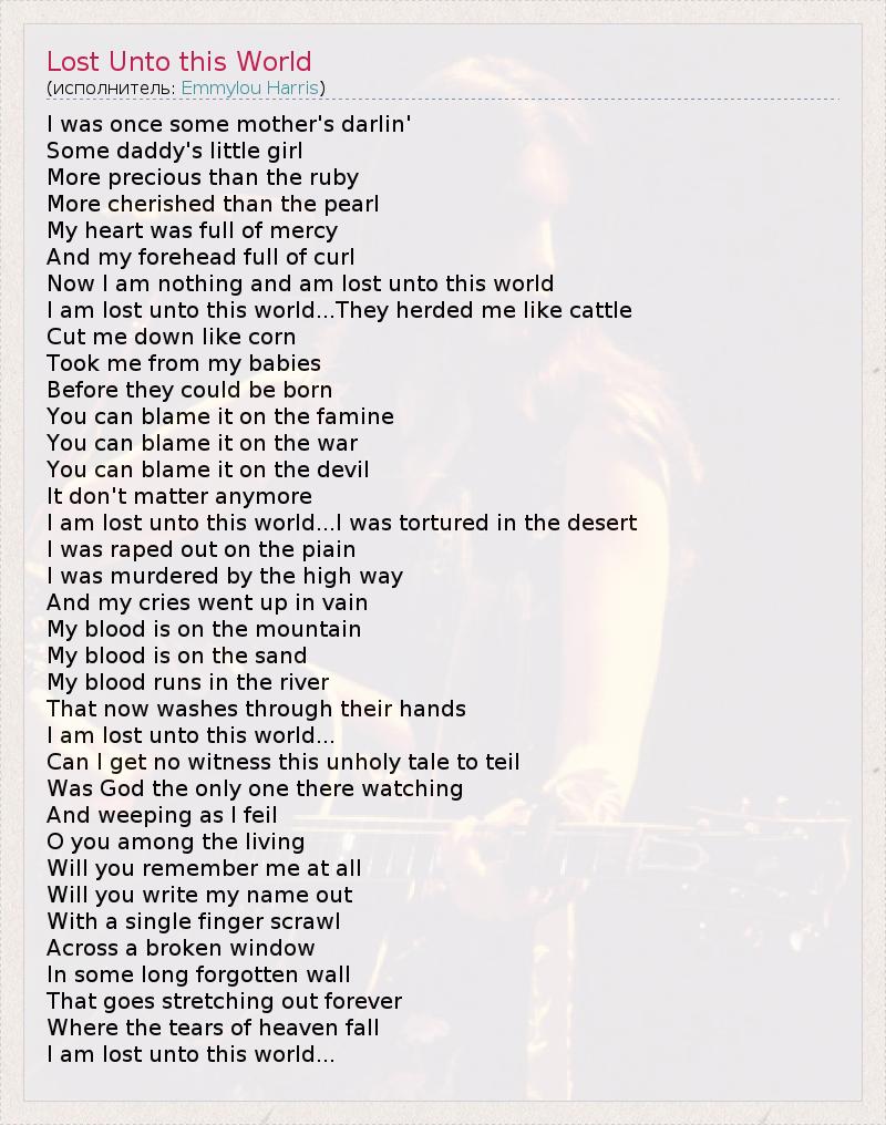 А как ты думаешь, о чем песня "Lost Unto this World" ?