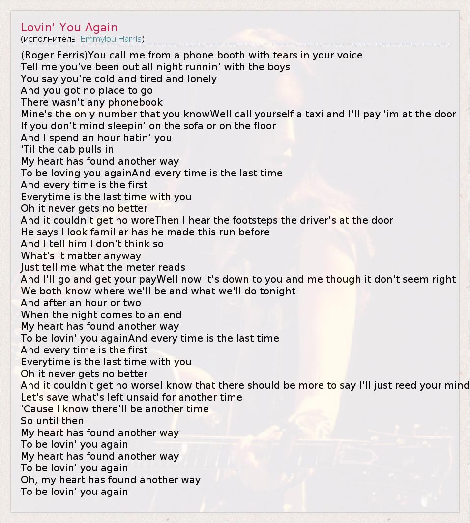 А как ты думаешь, о чем песня "Lovin' You Again" ?