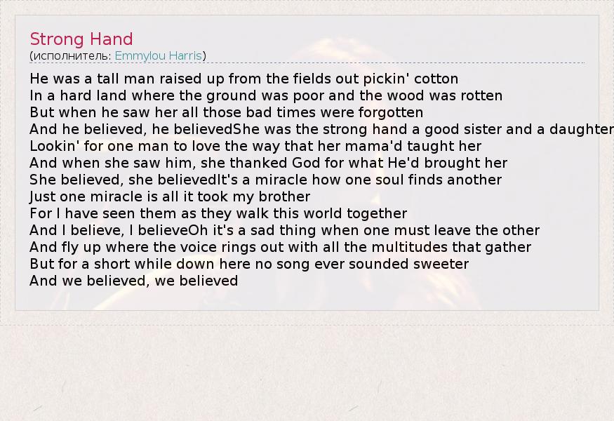 А как ты думаешь, о чем песня "Strong Hand" ?