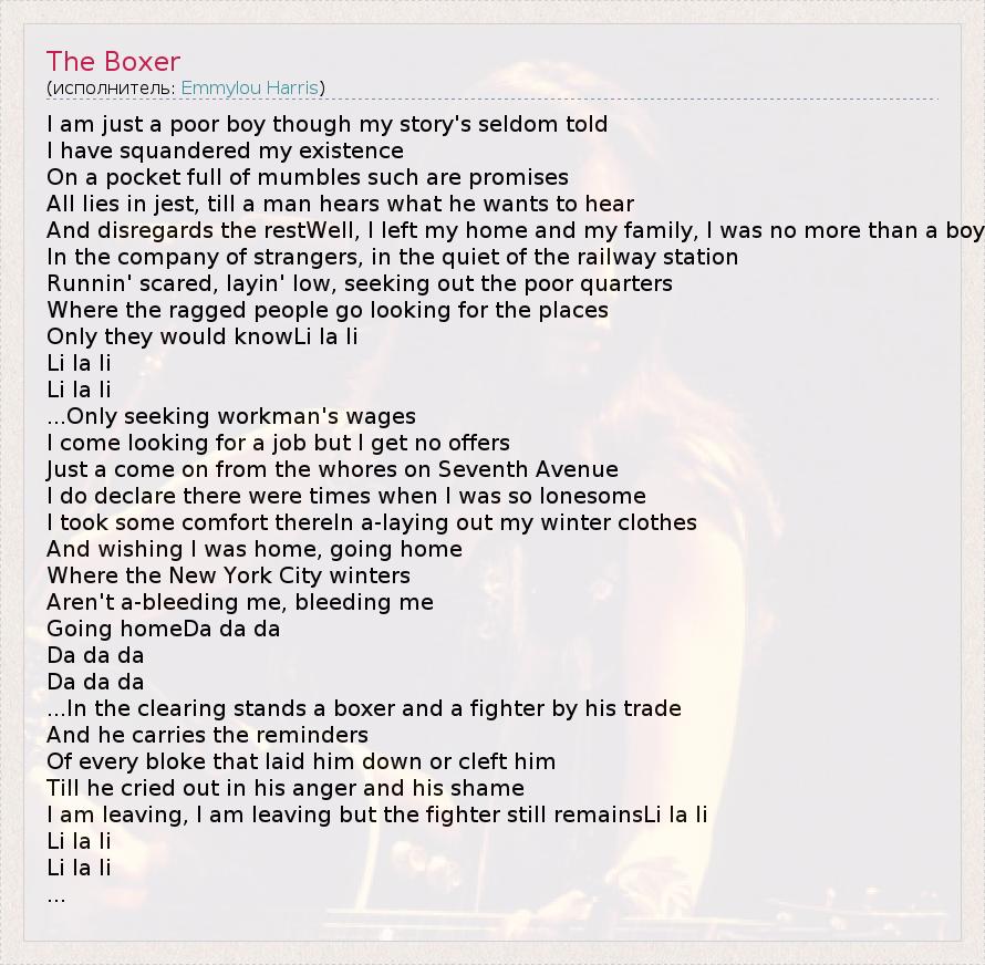 And disregards the restWell, I left my home and my family, I was no more than a boy