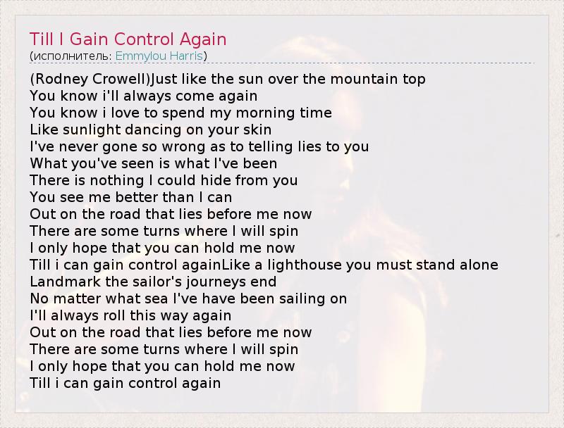ГлавнаяИсполнителиEmmylou HarrisTill I Gain Control Again