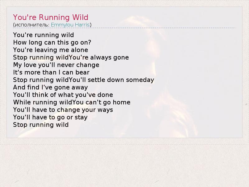 А как ты думаешь, о чем песня "You're Running Wild" ?