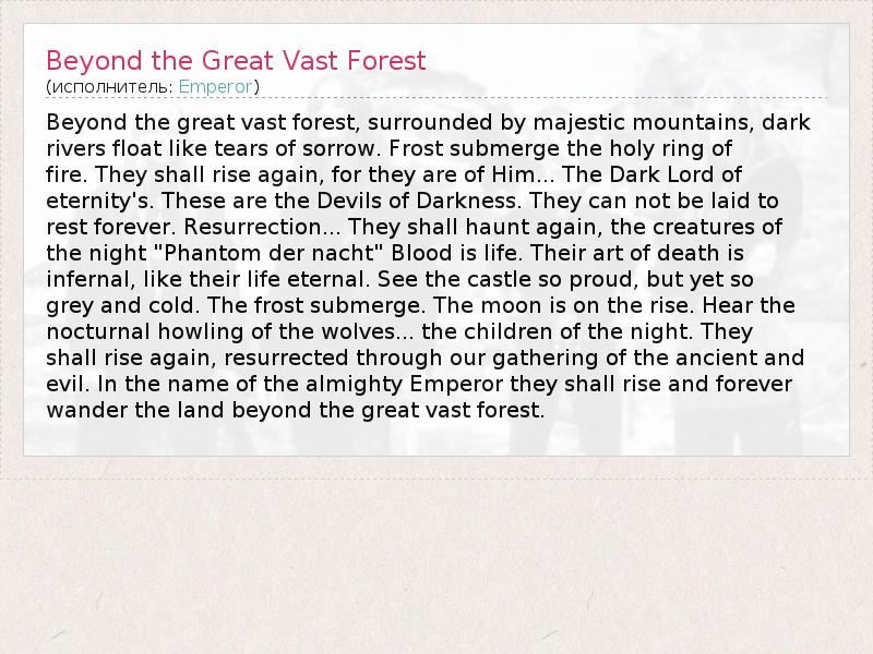 А как ты думаешь, о чем песня "Beyond the Great Vast Forest" ?