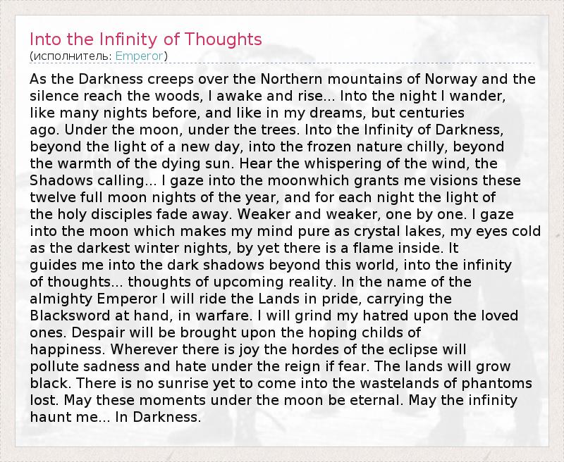 ГлавнаяИсполнителиEmperorInto the Infinity of Thoughts