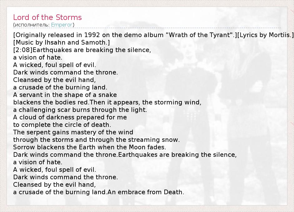 А как ты думаешь, о чем песня "Lord of the Storms" ?