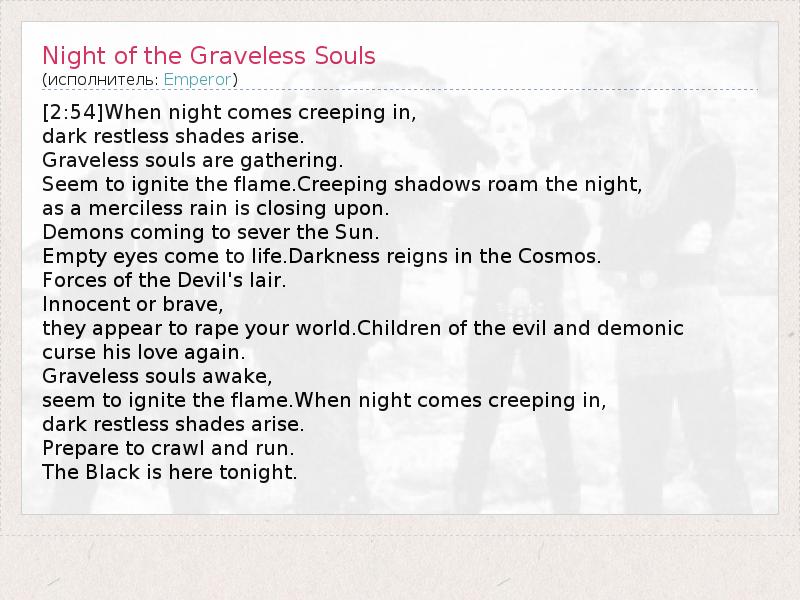 А как ты думаешь, о чем песня "Night of the Graveless Souls" ?