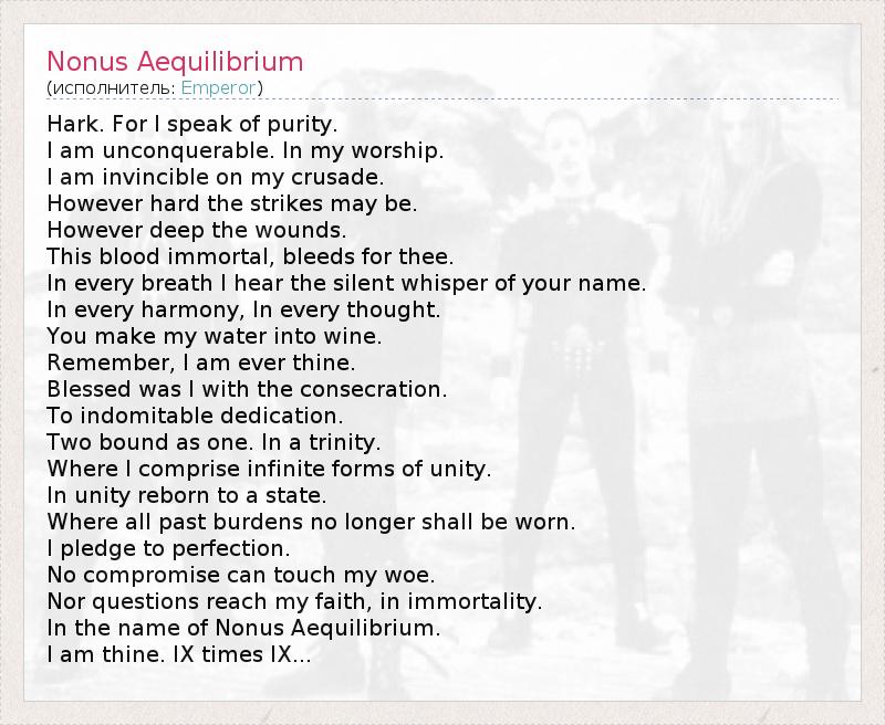 А как ты думаешь, о чем песня "Nonus Aequilibrium" ?