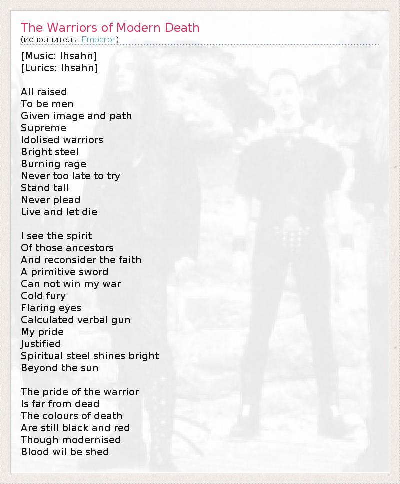 А как ты думаешь, о чем песня "The Warriors of Modern Death" ?