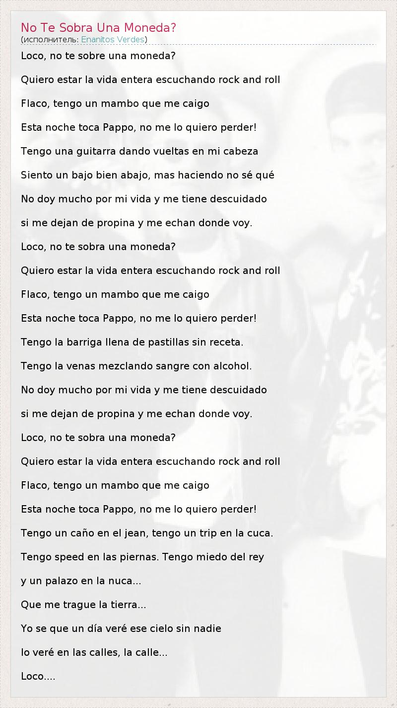 А как ты думаешь, о чем песня "No Te Sobra Una Moneda?" ?