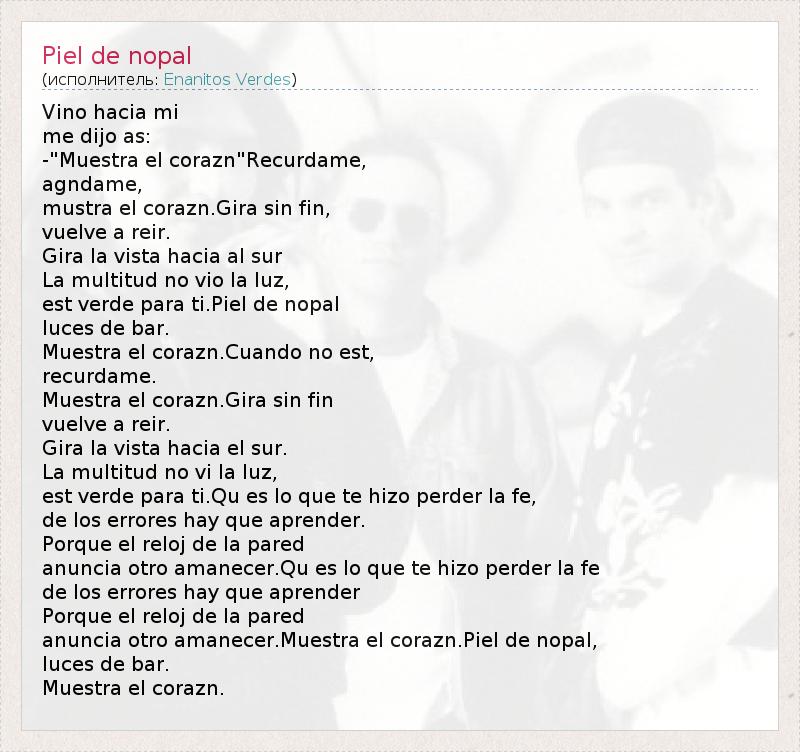 А как ты думаешь, о чем песня "Piel de nopal" ?