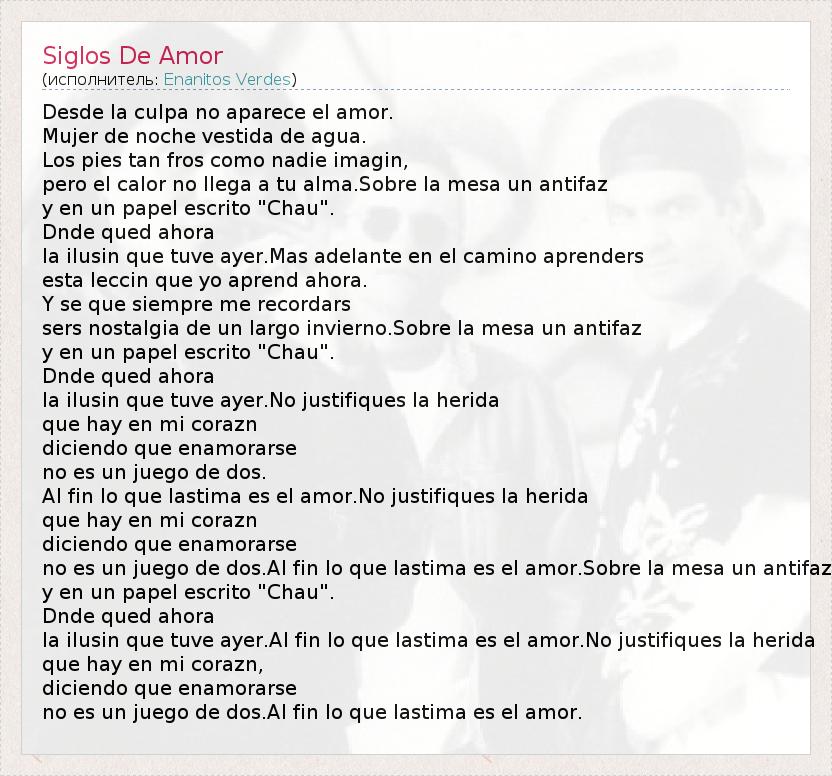 А как ты думаешь, о чем песня "Siglos De Amor" ?