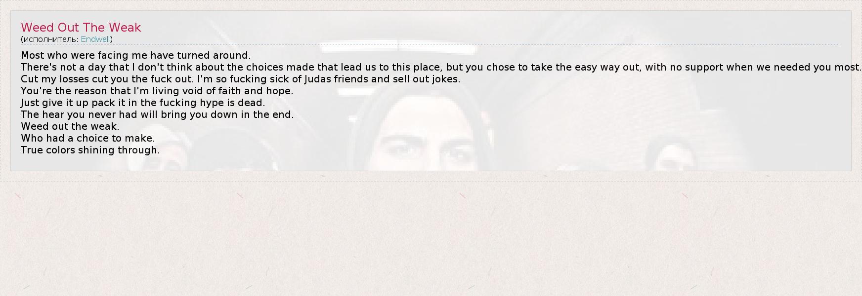 А как ты думаешь, о чем песня "Weed Out The Weak" ?