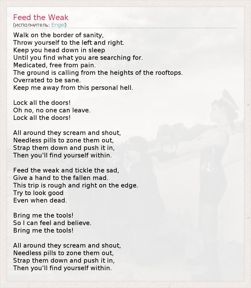 А как ты думаешь, о чем песня "Feed the Weak" ?
