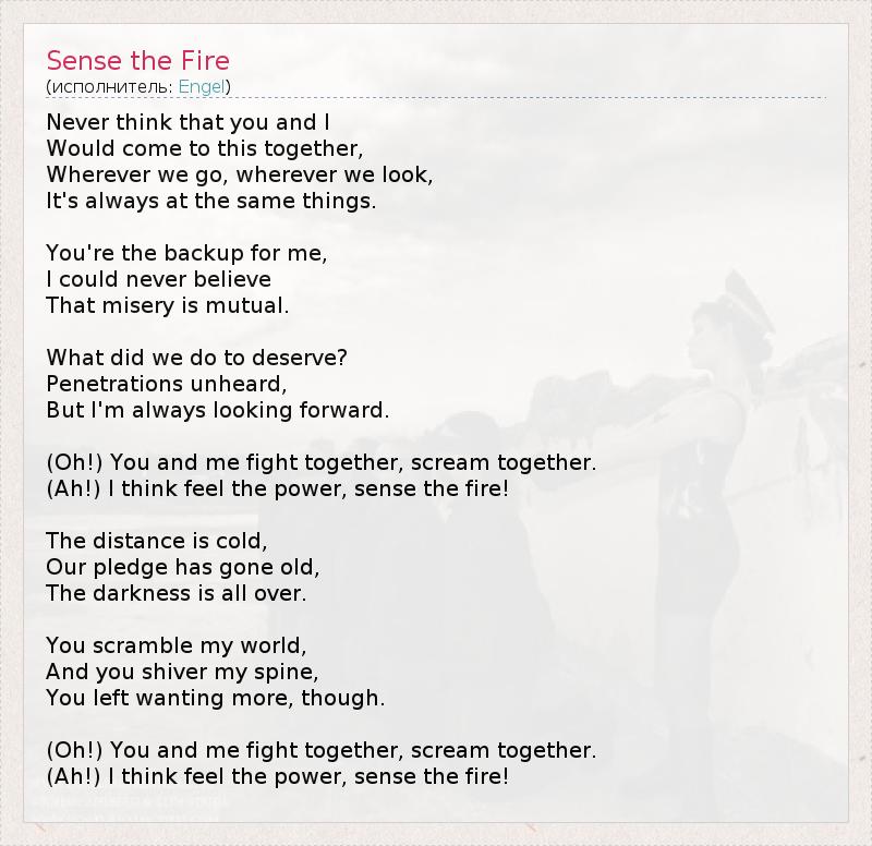 А как ты думаешь, о чем песня "Sense the Fire" ?