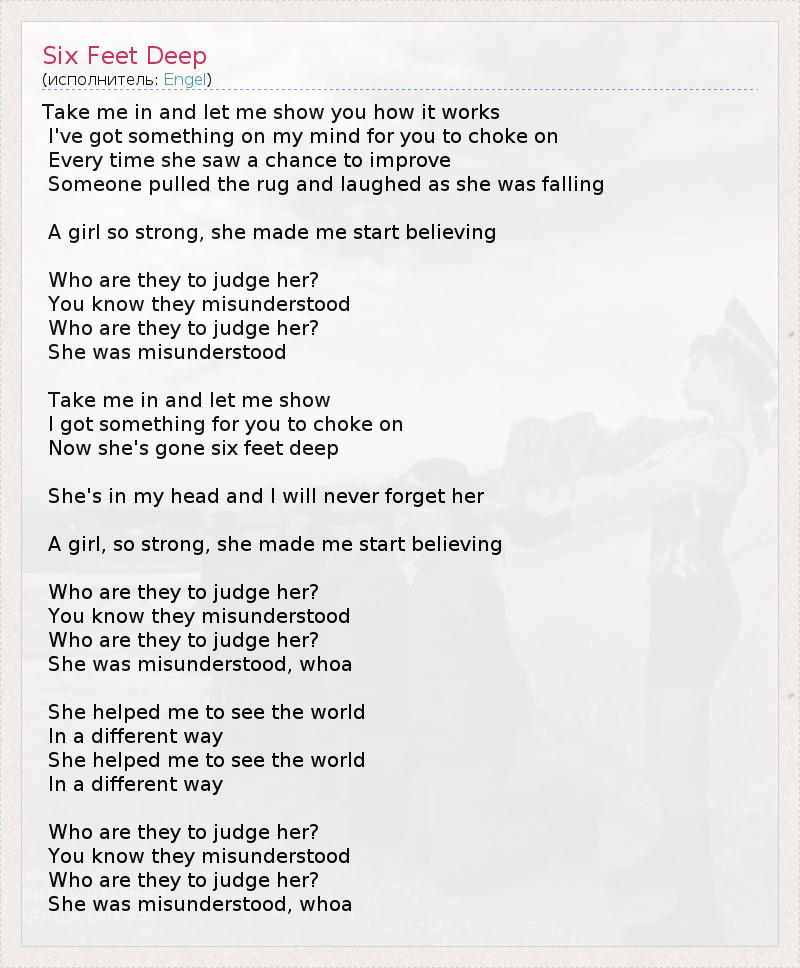А как ты думаешь, о чем песня "Six Feet Deep" ?