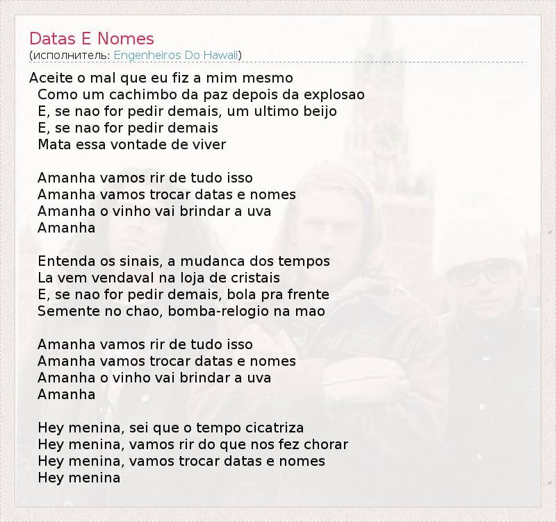 А как ты думаешь, о чем песня "Datas E Nomes" ?