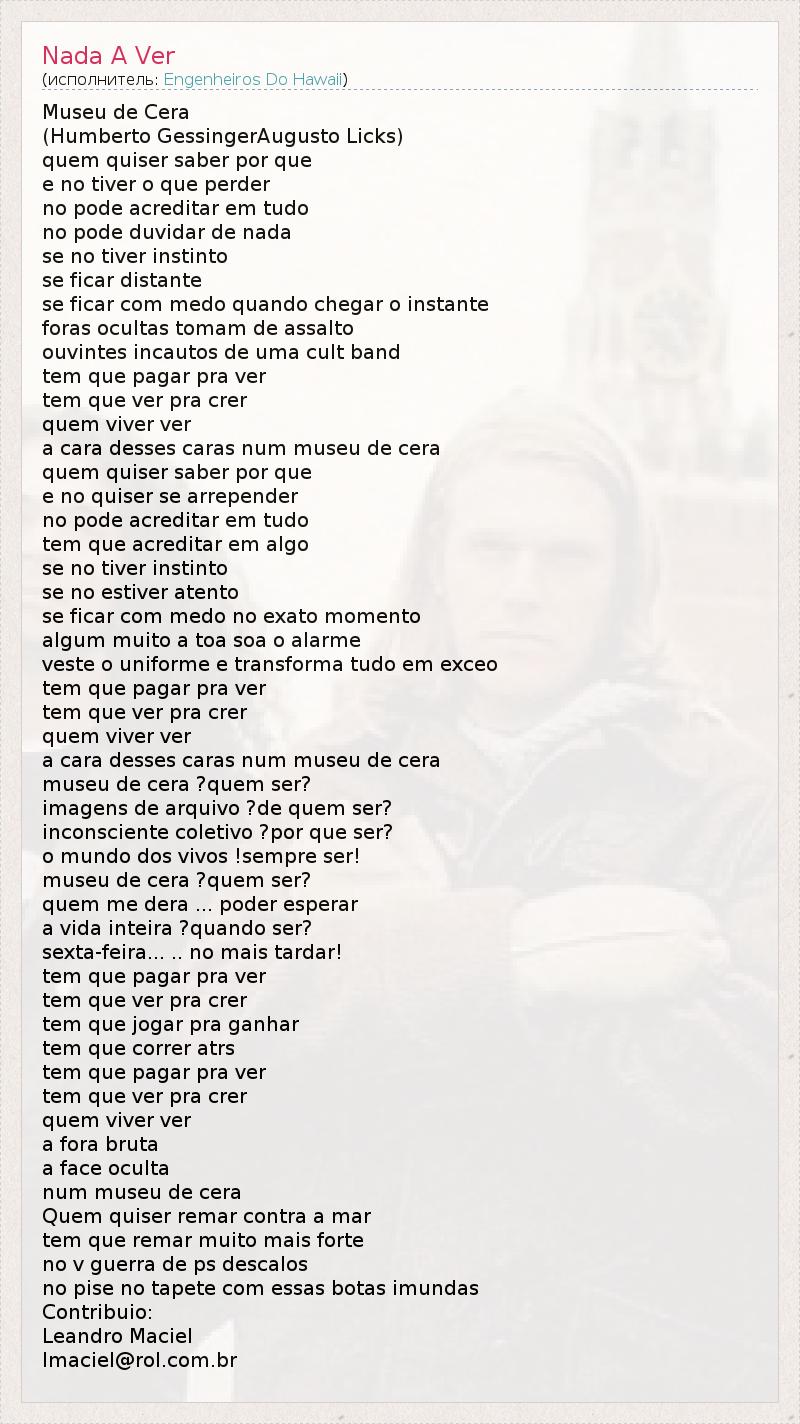 А как ты думаешь, о чем песня "Nada A Ver" ?