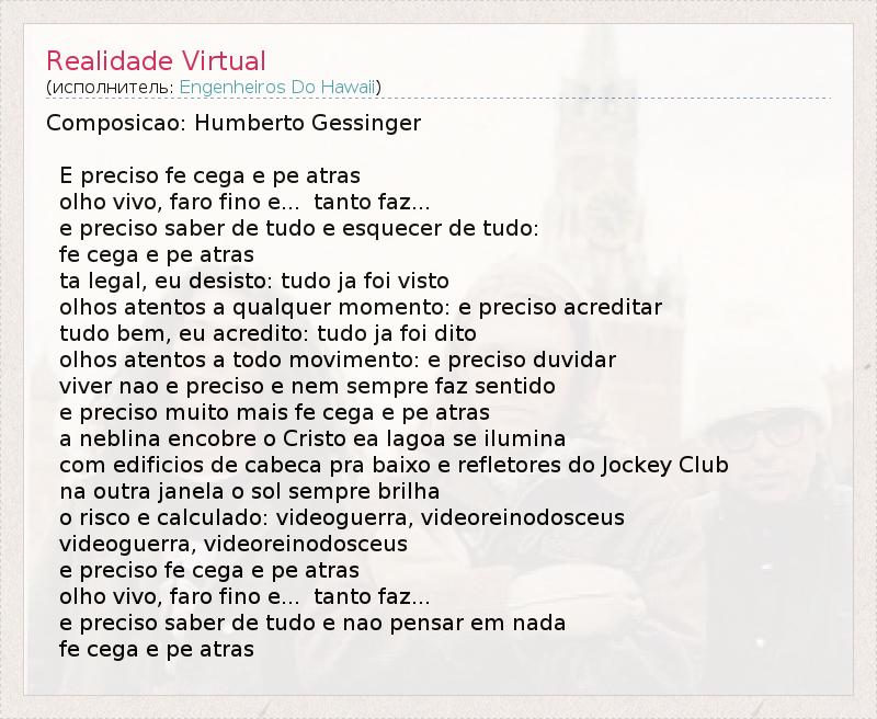 А как ты думаешь, о чем песня "Realidade Virtual" ?